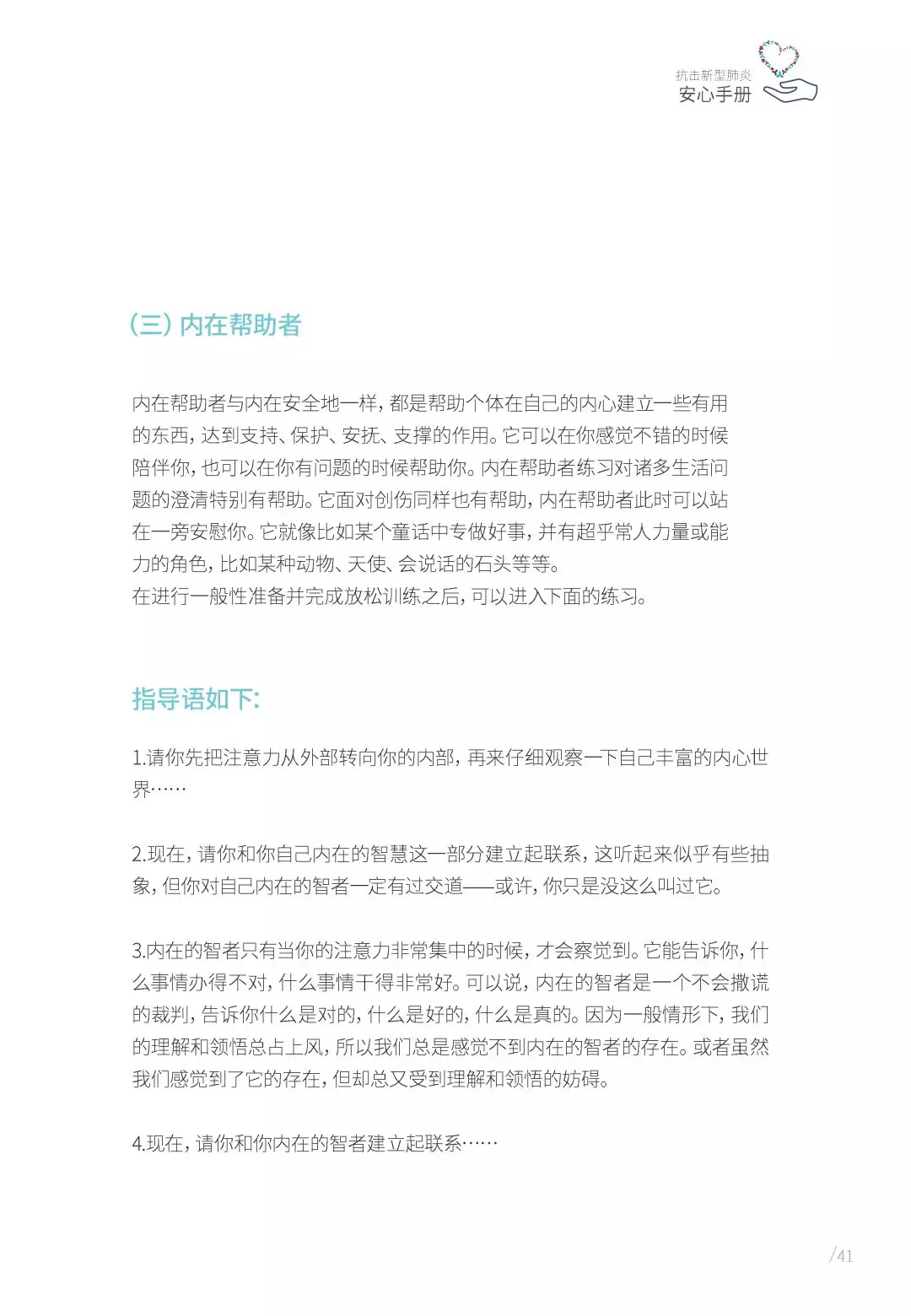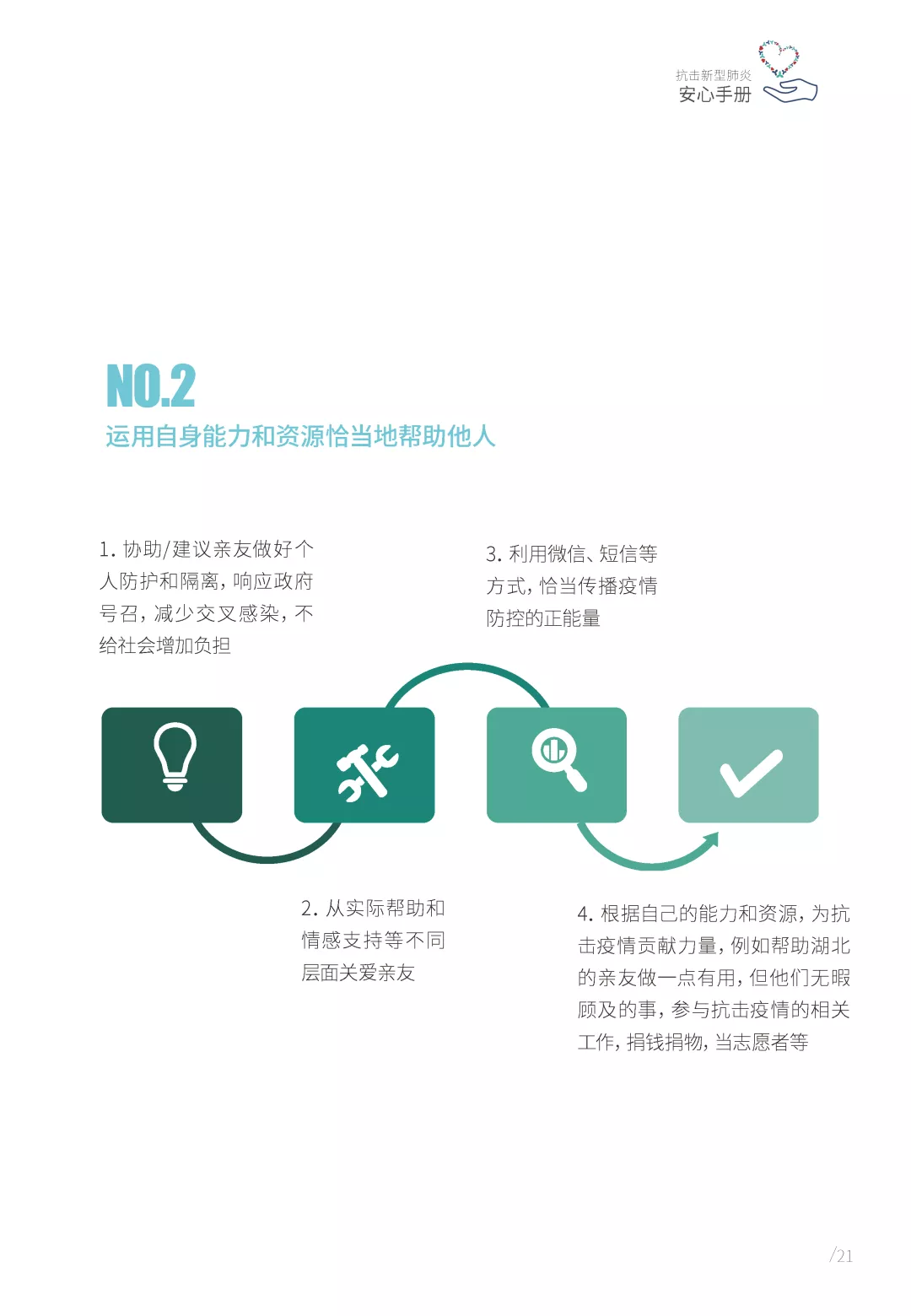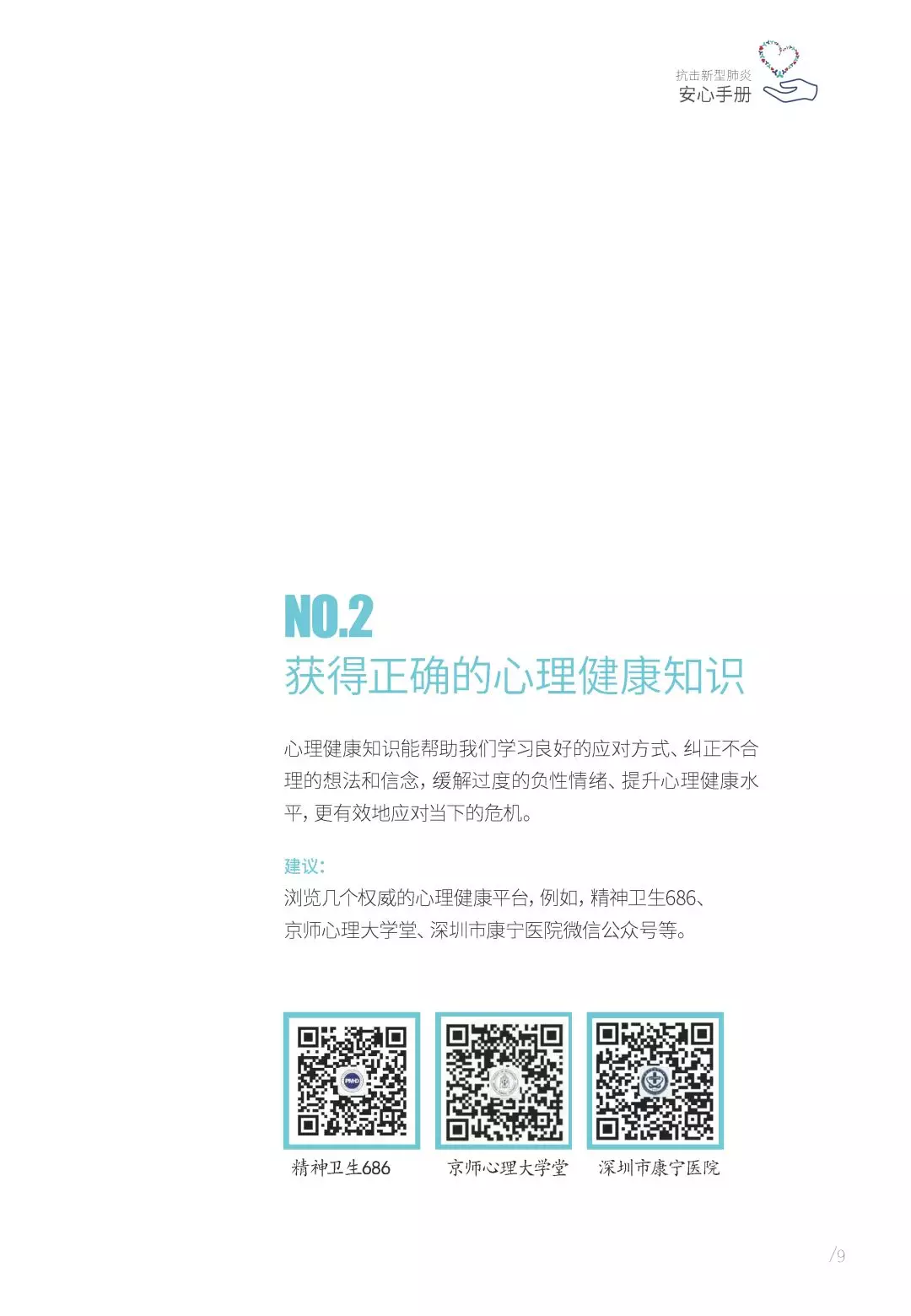 抗擊新型肺炎“安心手冊”由深圳市精神衛(wèi)生中心/深圳市康寧醫(yī)院支持,深圳市康寧醫(yī)院始建于1980年,是深圳市唯一一家集預(yù)防、醫(yī)療、康復(fù)、科研、教學(xué)于一體的公立三甲精神病專科醫(yī)院。2010年以來,醫(yī)院連續(xù)九年名列復(fù)旦大學(xué)醫(yī)院管理研究所中國最佳??婆判邪窬駥?漆t(yī)院前十位;2017年榮膺第五屆全國文明單位;2019年精神科獲評廣東省高水平臨床重點(diǎn)專科。醫(yī)院服務(wù)在各類顧客體驗(yàn)度和公眾滿意度測評中,名列前茅。