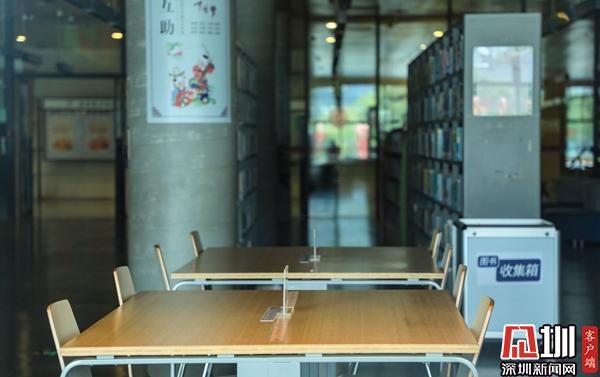 寶安圖書館:透過玻璃窗往里看,館內(nèi)空蕩蕩的場景與往日形成鮮明對比。