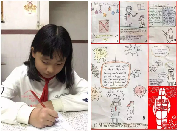五(6)中隊(duì)的徐曼同學(xué)通過(guò)繪本讓更多的小朋友了解新型冠狀病毒感染的肺炎。