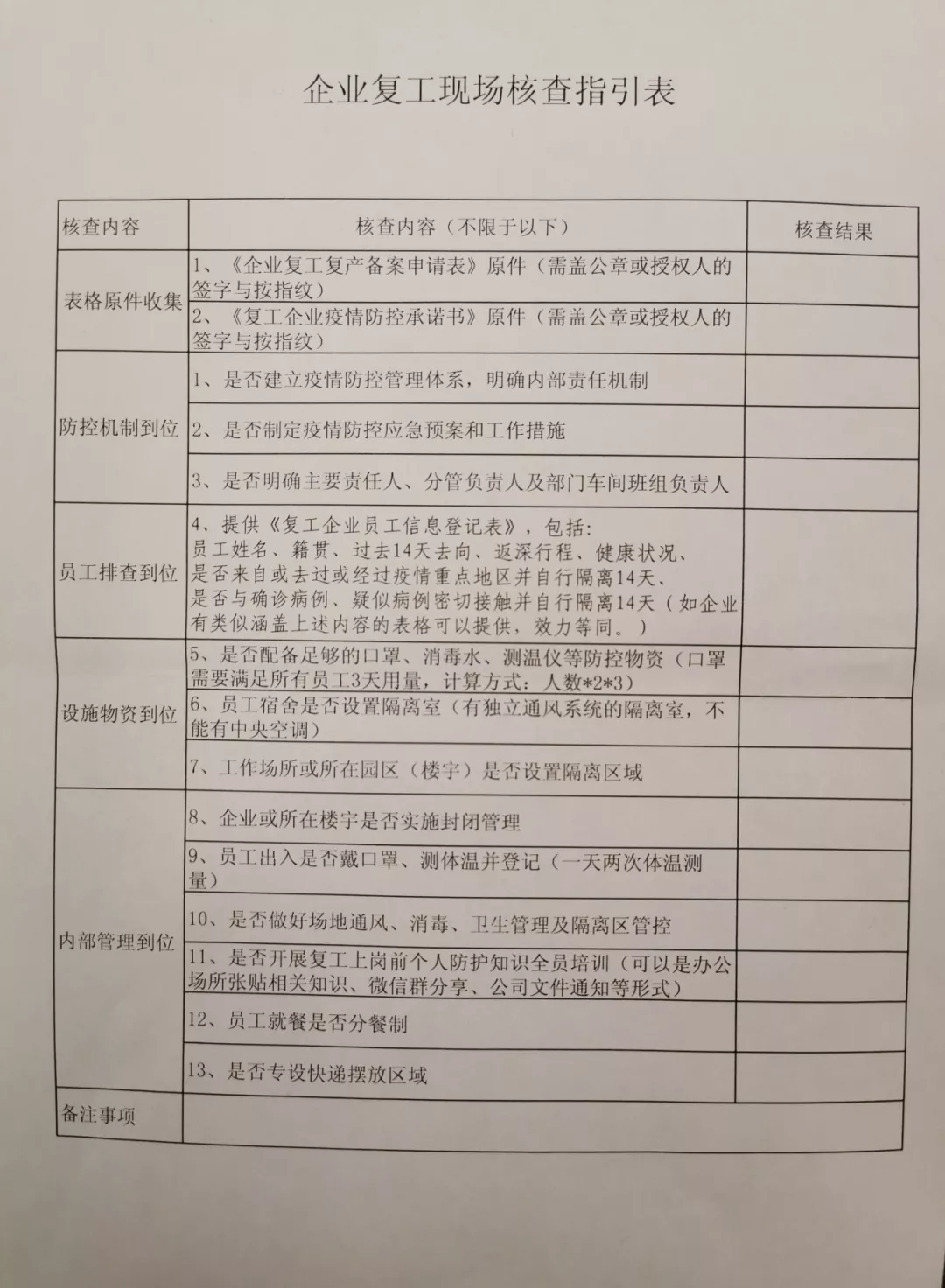 企業(yè)復(fù)工現(xiàn)場(chǎng)核查指引表。新華社記者孫飛2月7日攝