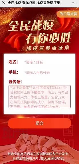 深圳新聞網(wǎng)將結(jié)合網(wǎng)友點贊情況,選出若干條優(yōu)秀的戰(zhàn)疫宣傳語。