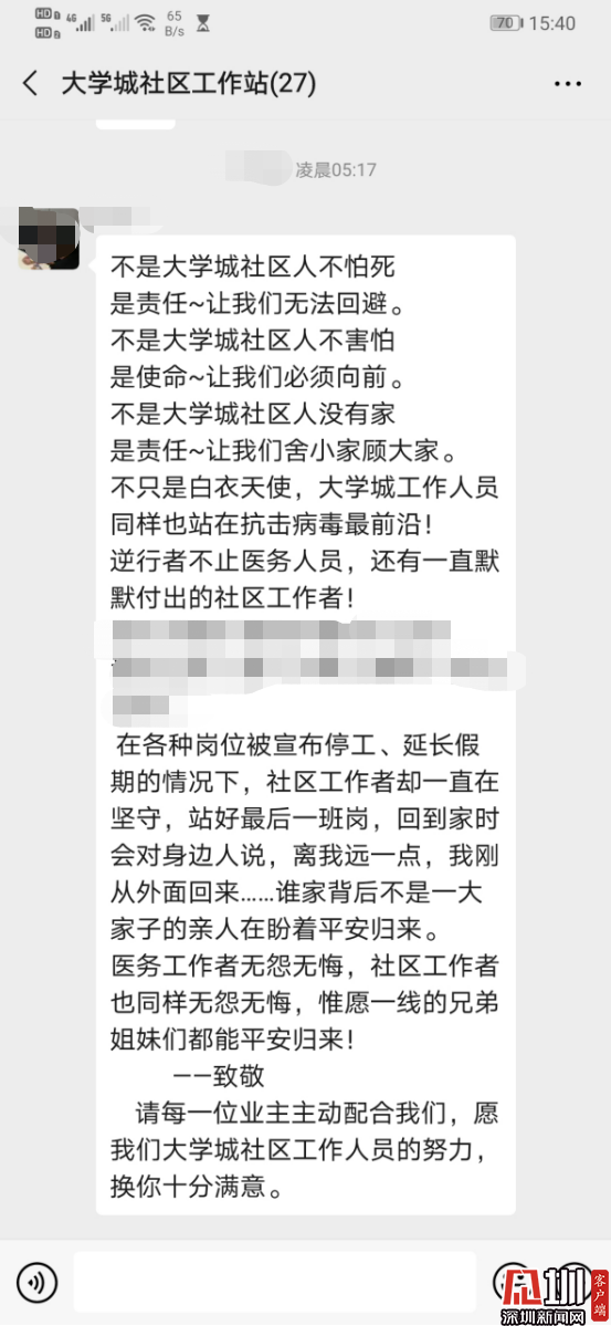 ——大學城社區(qū)網格員在工作群里發(fā)言
