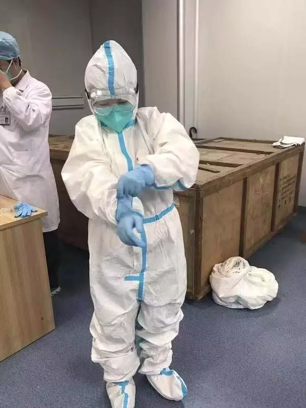 即便戴著口罩,還是能從她的語(yǔ)氣中聽到洋溢著的幸福感。刷過醫(yī)院醫(yī)生專有的門禁卡,袁曉珊進(jìn)入老公的辦公區(qū)域。她老公叫黃茗勇,是深圳市第三人民醫(yī)院放射科技師。見到他時(shí),1米7左右的黃茗勇身上穿著藍(lán)色醫(yī)用防護(hù)服,臉上戴著白色醫(yī)用口罩?!斑@就是我老公?!痹瑫陨阂谎劬驼J(rèn)出來(lái)了。