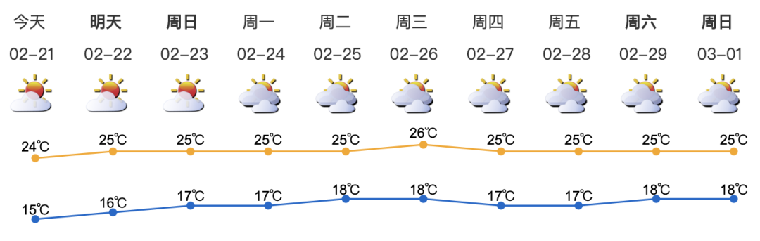 未來(lái)三天晴天間多云,氣溫回升。