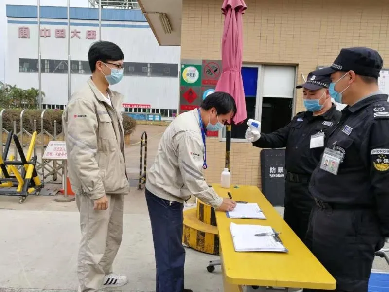 位于福城街道的大唐寶昌燃氣發(fā)電公司有序復(fù)工復(fù)產(chǎn),員工進出園區(qū)測溫登記。
