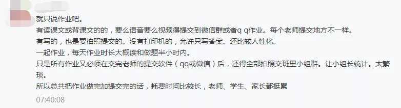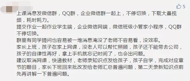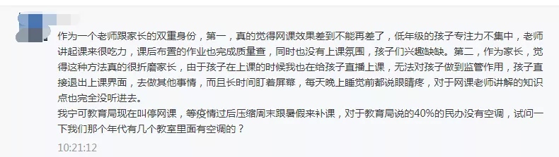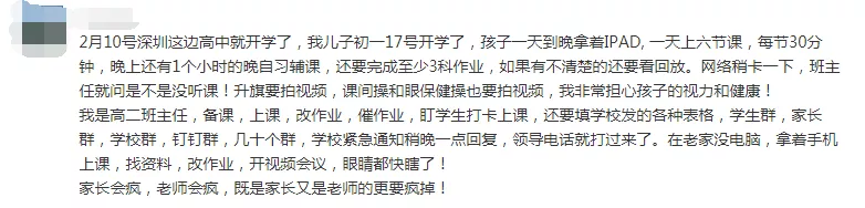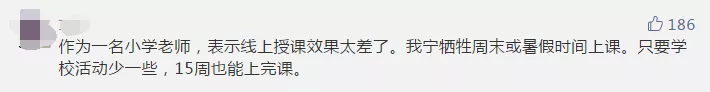 一位小學(xué)老師也直言:線(xiàn)上授課效果太差了,寧愿犧牲周末或暑假時(shí)間上課。