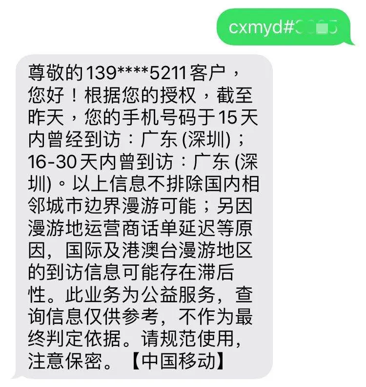 編輯短信CXMYD#身份證號(hào)碼后四位到10001,授權(quán)回復(fù)Y后,實(shí)現(xiàn)“漫游地查詢”,可查詢手機(jī)號(hào)近15日內(nèi)的途徑地信息。