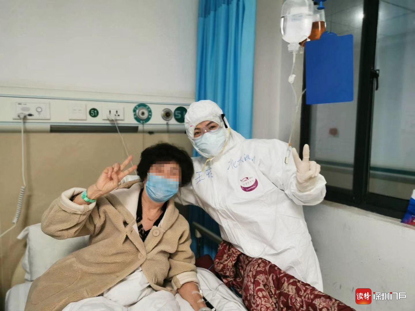 張阿姨和深圳醫(yī)療隊(duì)隊(duì)員趙晨曦在病區(qū)內(nèi)合影。深圳醫(yī)療隊(duì)供圖