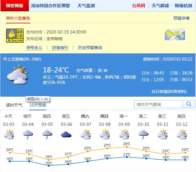 3月3日深圳多云;氣溫17-20℃;偏東風(fēng)3級(jí),陣風(fēng)5-6級(jí);能見度5-15公里。早晨體感偏涼,注意添衣。