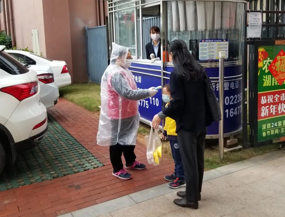 幫助老人填寫(xiě)“i 深圳”、給來(lái)往居民測(cè)溫