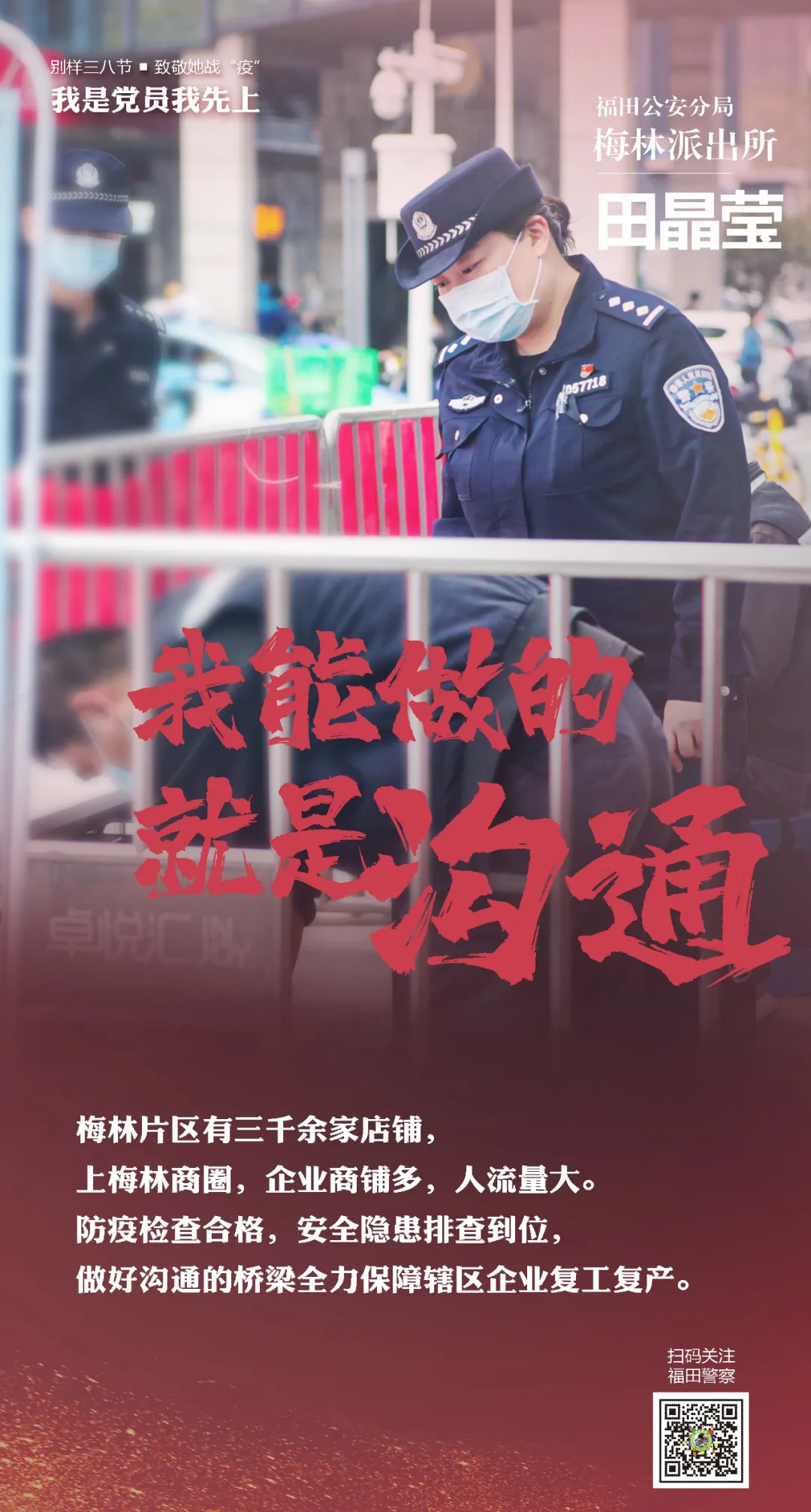 在“三八”國際勞動婦女節(jié)來臨之際,讓我們走進福田警營,聽聽這些“最美逆行者”的戰(zhàn)疫故事。