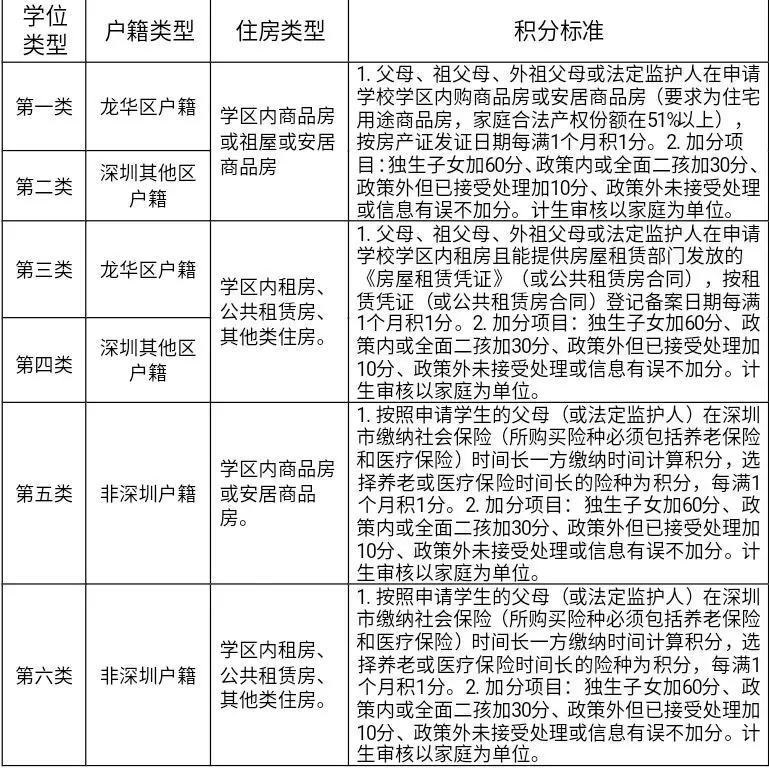 根據(jù)申請(qǐng)學(xué)生戶籍和住房情況,學(xué)位類型共劃分為以下6類: