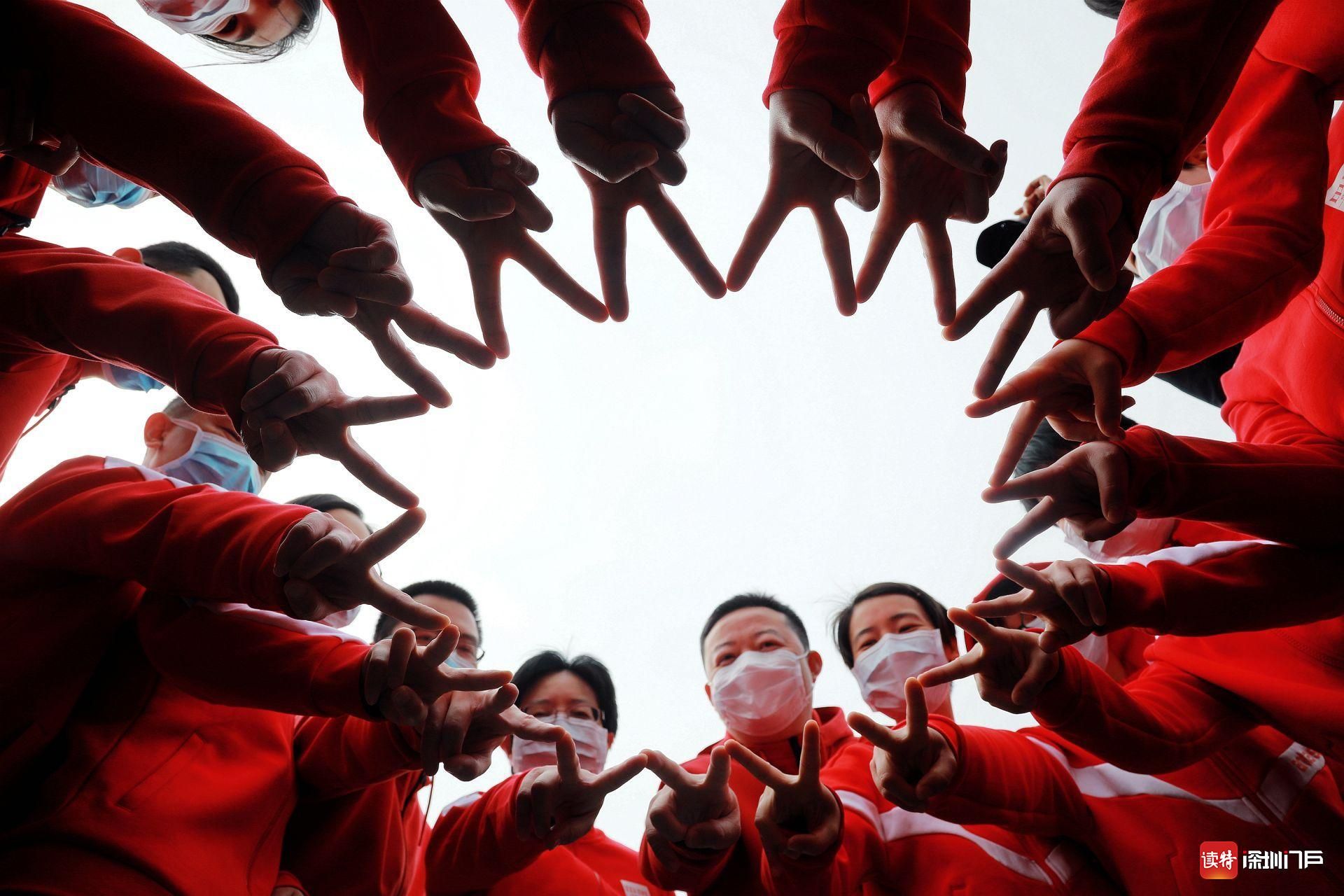 排好隊拍完照,幾位年輕的女護士靈機一動,每人伸出右手做出勝利的“V”形手勢,然后每個人手指挨著手指圍成了一個圓圈,讓記者拍照。這個造型立即激發(fā)了記者的創(chuàng)作欲望,于是記者直接躺在地上,準備仰拍這個具有特殊意義的手勢造型。易黎隊長心領(lǐng)神會,馬上召集全隊參與進來,用“V”形手指圍成了一個更大的圓圈。很快,一張記者用躺在地上的視角仰拍的作品誕生了,易黎給這張照片起了個標題,叫《監(jiān)利?清零成功》。(特派荊州記者 李晶川)