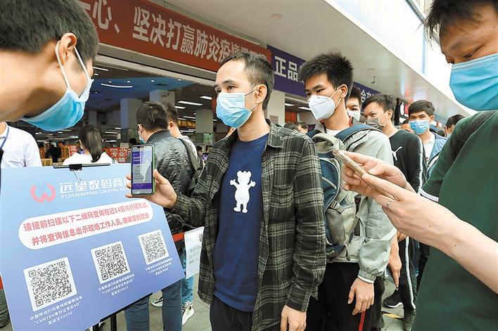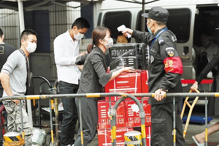 為方便市場了解人員去向,華強北街道指導(dǎo)市場管理方利用運營商推送服務(wù),引導(dǎo)商戶通過掃描相應(yīng)的運營商二維碼,獲取人員過去14天去向,做到入場人員信息“一掃清”。根據(jù)有關(guān)通知,商戶準(zhǔn)備好自己的健康檔案、i深圳、“一掃清”等信息,經(jīng)現(xiàn)場測溫正常,若是從外地返深人員,按要求進行居家隔離后,才能順利取得市場商戶通行證。通行證需要配合身份證使用,確保一人一證。另外,華強北街道還通過升級通風(fēng)系統(tǒng)等方式加大了室內(nèi)空氣流動量。(深圳商報記者 余海波 攝影報道)