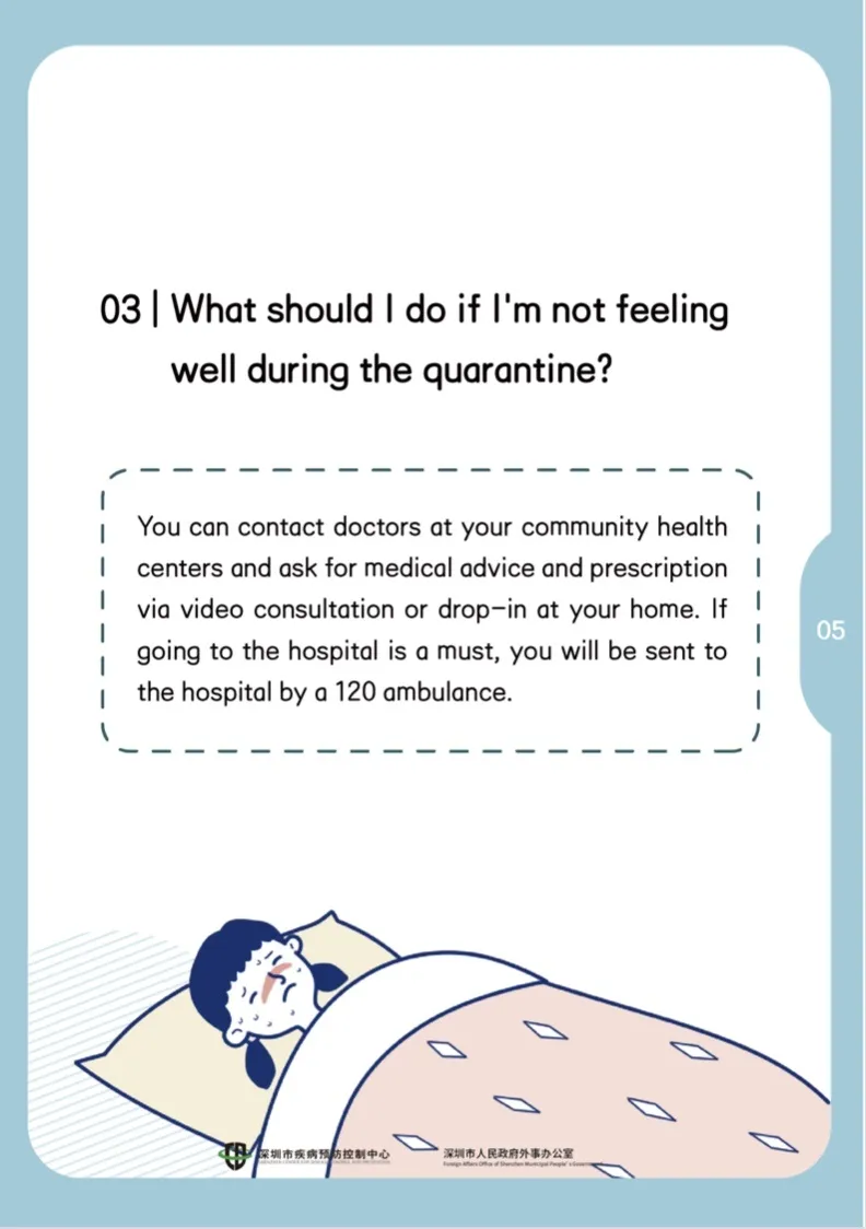 應(yīng)在早、晚各測量一次體溫,并于每天18∶00時(shí)前報(bào)告給社康醫(yī)生。如果出現(xiàn)有發(fā)熱、咳嗽、氣促等癥狀,應(yīng)立即向社康醫(yī)生報(bào)告,社康醫(yī)生會上門診斷。