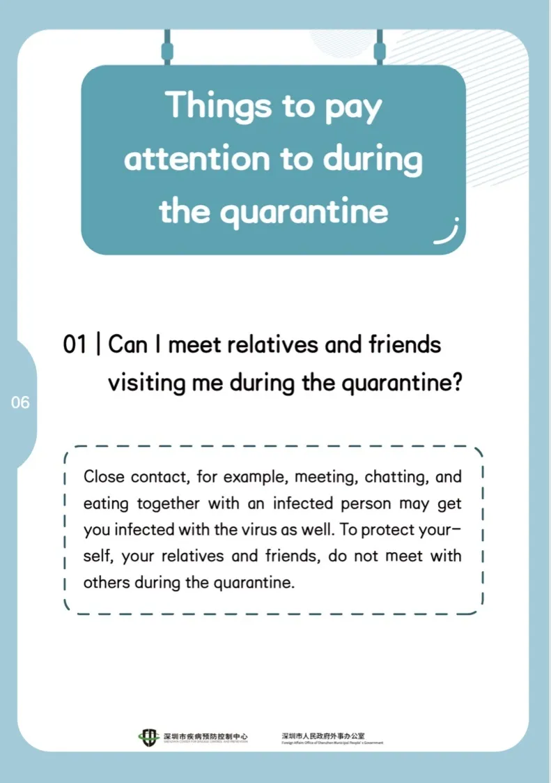 因此,為了您和家人健康,從疫情高發(fā)重點(diǎn)地區(qū)來深返深后,應(yīng)當(dāng)進(jìn)行14天居家隔離,以確認(rèn)沒有感染病毒。在這非常時(shí)期,做好居家隔離既是對您自己和家人最好的保護(hù),也是為疫情早日結(jié)束做貢獻(xiàn)。