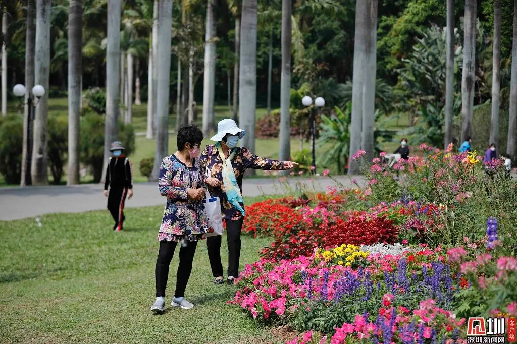 在蓮花山公園,不少市民賞花漫步,仍然戴著口罩,在享受好天氣的同時,也不放松對病毒的警惕。