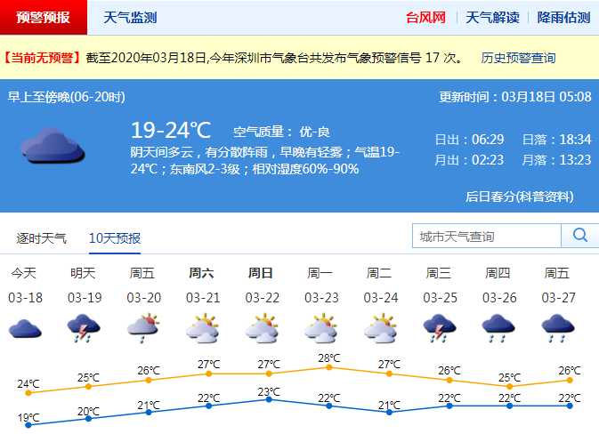 見(jiàn)圳客戶端·深圳新聞網(wǎng)2020年3月18日訊 送走前幾日干爽的天氣,我市將迎來(lái)新一波降雨。記者從市氣象局獲悉,受高空小波動(dòng)和低層西南風(fēng)加大影響,預(yù)計(jì)18-19日我市有明顯降雨,其中18日陰天間多云,有分散陣雨,氣溫19-24℃;19日陰天有(雷)陣雨,部分時(shí)間雨勢(shì)稍大;20日陣雨轉(zhuǎn)多云,早晚有輕霧或霧;21-24日多云為主,天氣溫暖濕潤(rùn)。