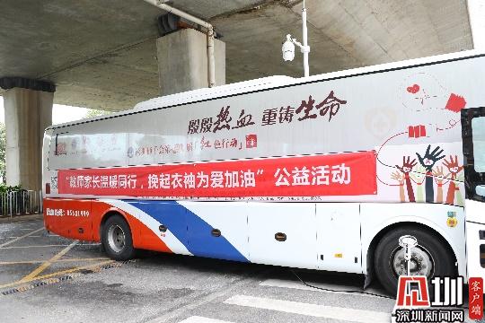 當天上午9時,深圳市血液中心的獻血車就已早早地待命在前海港灣學校門口,準備迎接大家的愛心啦。