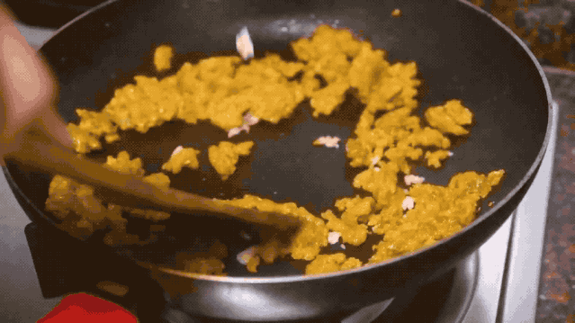 油鍋燒熱,不斷翻炒海膽,直到把海膽的水分炒干,只有動作快和把握好火候,才能保留海膽的鮮度。海膽炒得呈粒狀就可加入蒜蓉,這樣可以更好地刺激海膽香味。把米飯和海膽融合一起翻炒,使每一粒米飯都充分接觸油和熱量,這樣的炒飯才會松軟可口。最后加一點(diǎn)醬油,灑上一把蔥花銷魂的海膽炒飯就出爐啦。