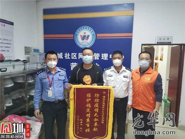 茜坑網(wǎng)格站四和組收到社會人士贈送的錦旗。