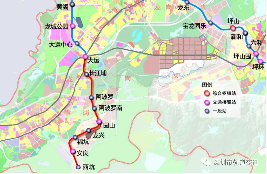 16號線二期工程自大運站至西坑站,線路長度9.53公里,為地下線,采用A型車6輛編組;建設(shè)工期5年。