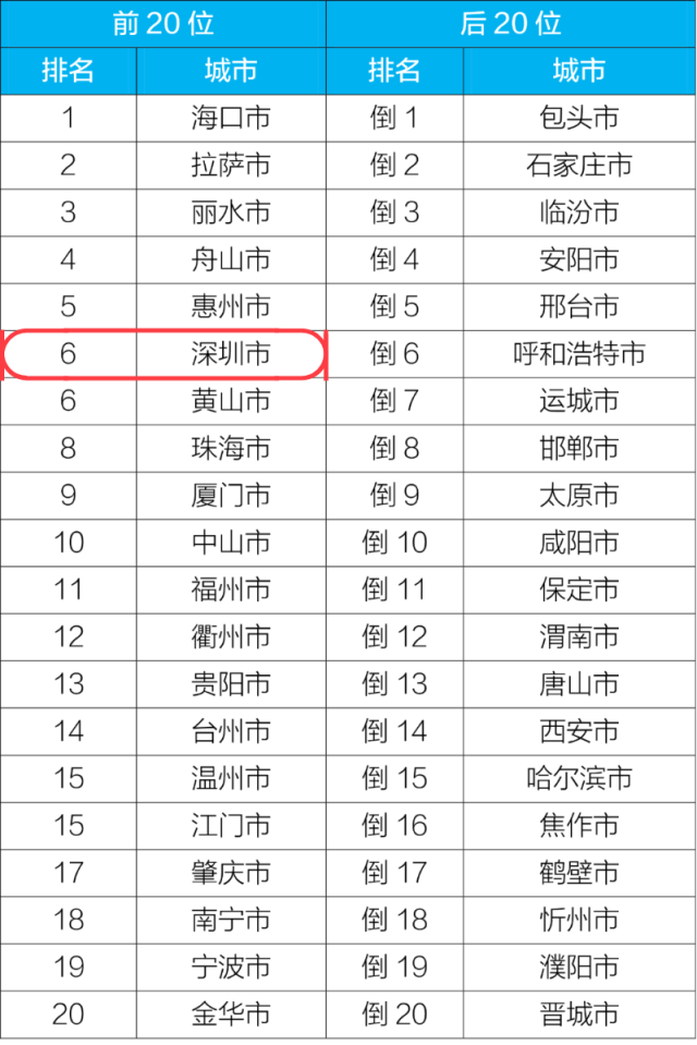1-3月,168個重點城市中包頭、石家莊、臨汾市等城市空氣質(zhì)量相對較差(從倒數(shù)第1名至倒數(shù)第20名);海口、拉薩、麗水市等城市空氣質(zhì)量相對較好,深圳排名第6。