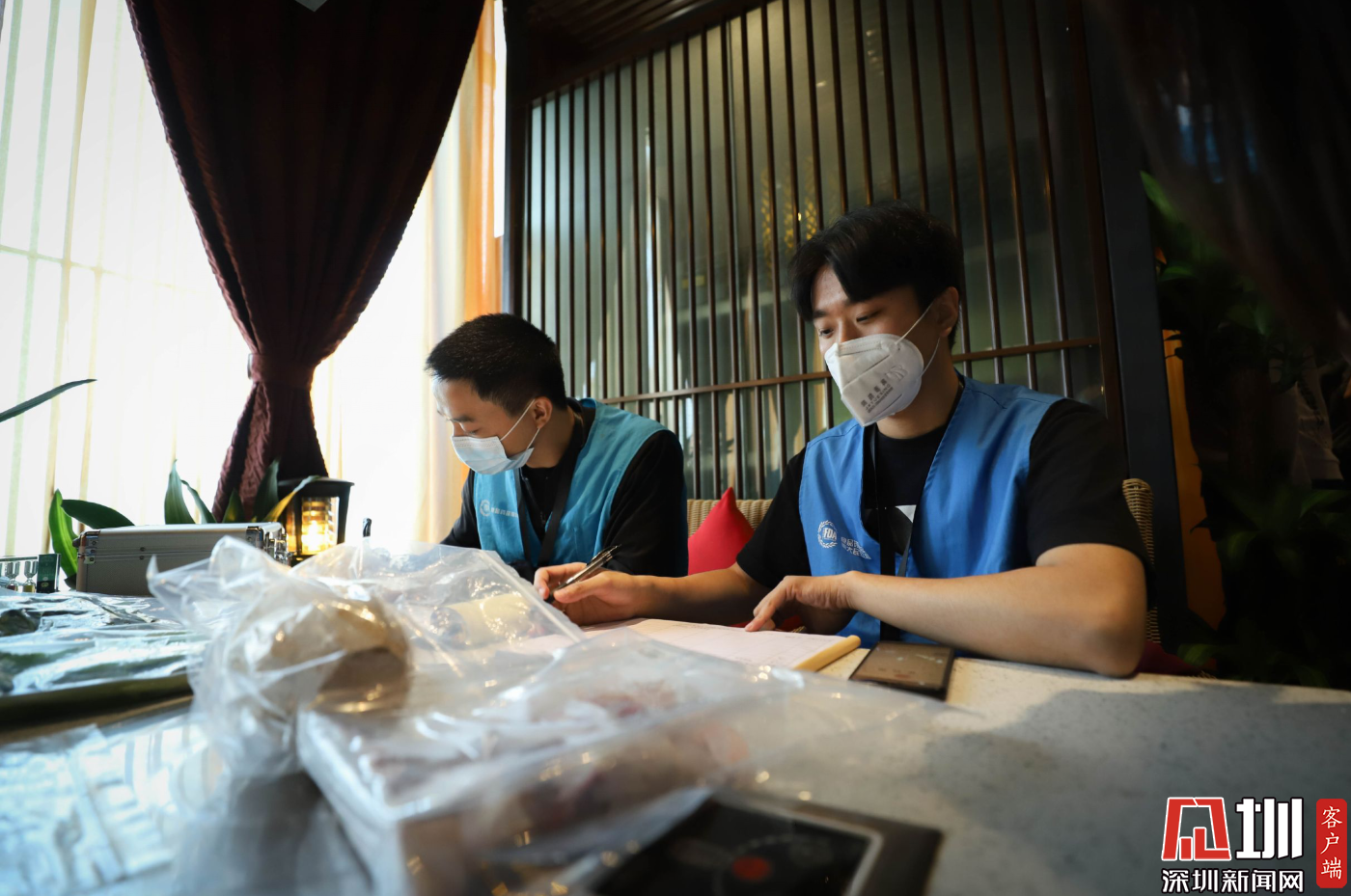本次行動主要檢查餐飲單位復(fù)工復(fù)產(chǎn)、防疫防控以及日常食品安全管理措施是否落實到位,南山區(qū)人大代表和食品安全志愿者全程參與監(jiān)督執(zhí)法行動。當(dāng)天,執(zhí)法人員分別就餐廳防疫物資準(zhǔn)備、后廚衛(wèi)生情況、顧客分區(qū)就座等情況,查看兩家餐廳是否落實到位。并由專業(yè)檢測人員正在對餐廳的食材進行快速檢測。
