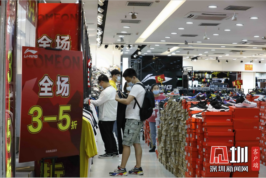 市民們在打折的門店選購商品。