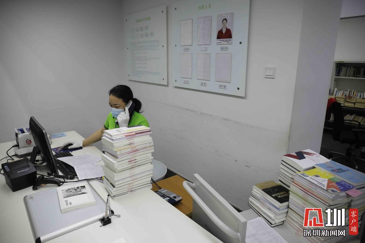 工作人員正在整理外館的書(shū)籍,每周外館的書(shū)籍會(huì)到福田圖書(shū)館交流一次。