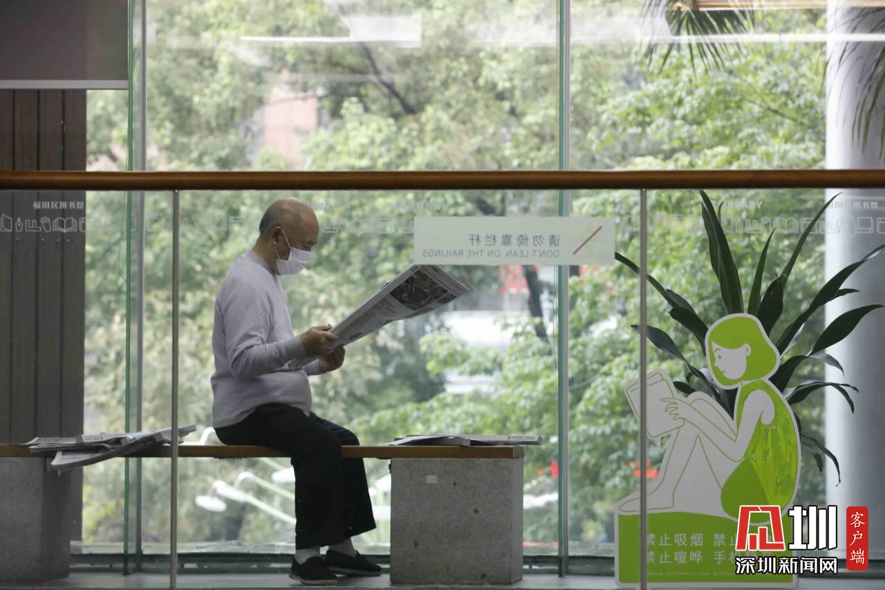 福田圖書(shū)館內(nèi),一位市民正在閱讀報(bào)紙。