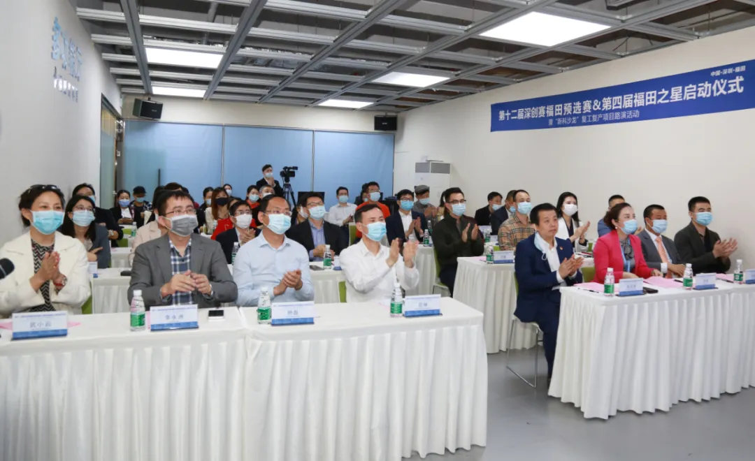 隨后,范坤與福田區(qū)科技創(chuàng)新局局長張忠暉等共同上臺啟動第十二屆深創(chuàng)賽福田預(yù)選賽暨第四屆“福田之星”大賽,同時為福田高科館授予“福田科技港灣”牌匾。
