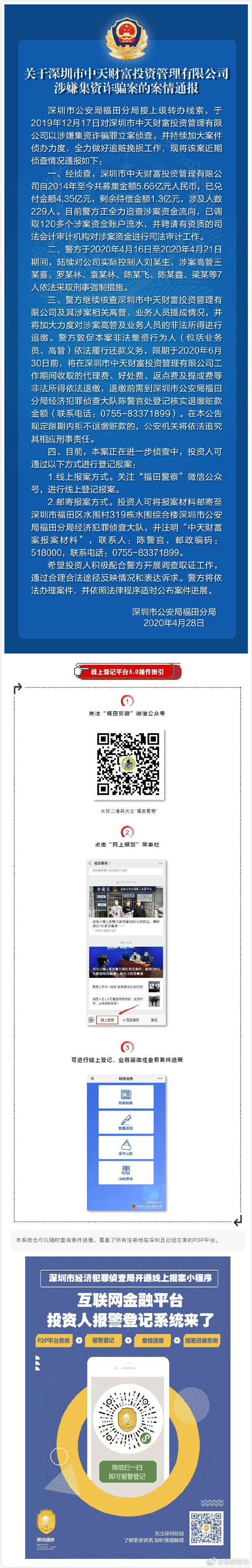 關于深圳市中天財富投資管理有限公司涉嫌集資詐騙案的案情通報 ????