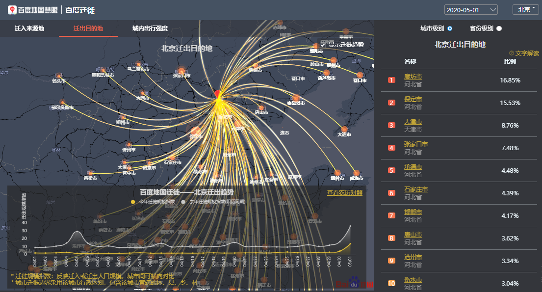 百度地圖遷徙大數(shù)據(jù)平臺-北京遷出目的地