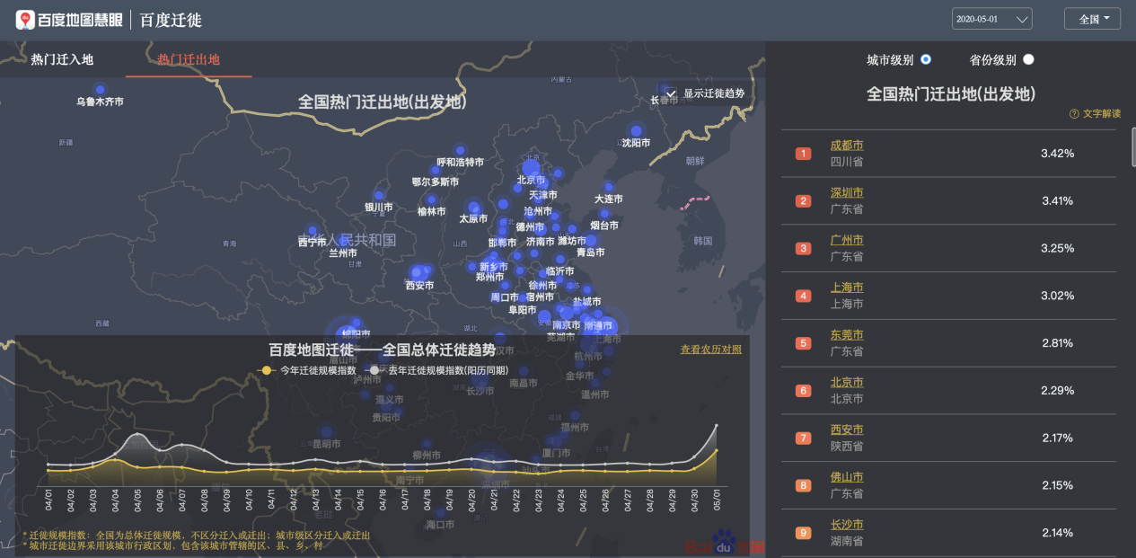 百度地圖遷徙大數(shù)據(jù)平臺-全國熱門遷出地