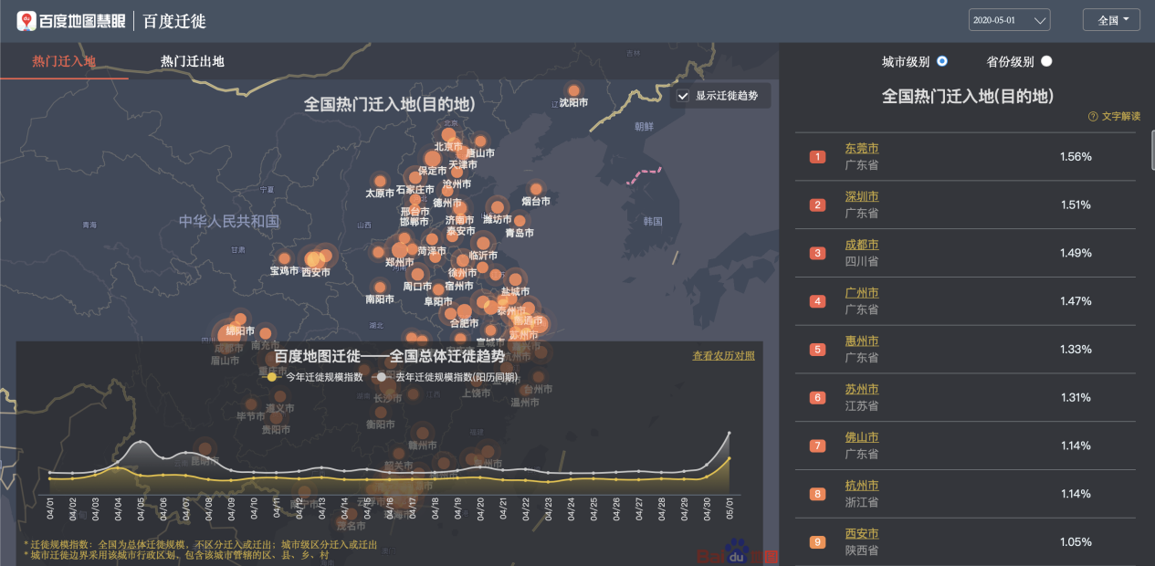 百度地圖遷徙大數(shù)據(jù)平臺-全國熱門遷入地