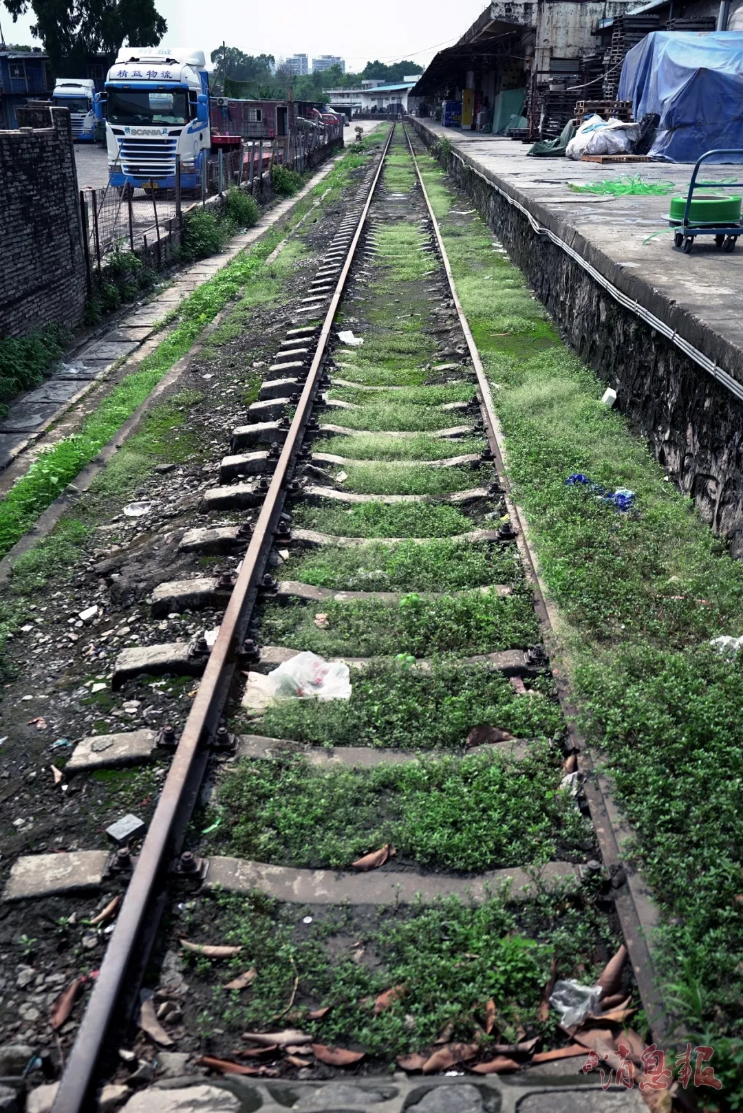 ▲一條貨運(yùn)專線逐漸被綠植覆蓋,好久沒有列車駛過。