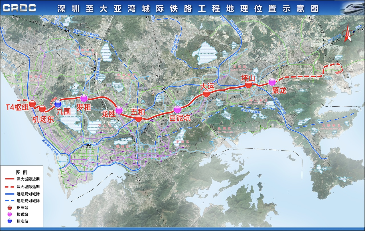 深圳市城市交通規(guī)劃設(shè)計研究中心受中國鐵路設(shè)計集團(tuán)有限公司委托,開展深圳至大亞灣城際(以下簡稱“深大城際”)鐵路工程可行性研究社會穩(wěn)定分析專題研究。根據(jù)其發(fā)布的公示信息,深大城際鐵路規(guī)劃自寶安機(jī)場T4站至惠州大亞灣經(jīng)濟(jì)技術(shù)開發(fā)區(qū),途經(jīng)寶安區(qū)、龍華區(qū)、龍崗區(qū)、坪山區(qū)、惠州市大亞灣地區(qū),其中深圳段為近期實(shí)施工程,惠州段為遠(yuǎn)期預(yù)留工程。