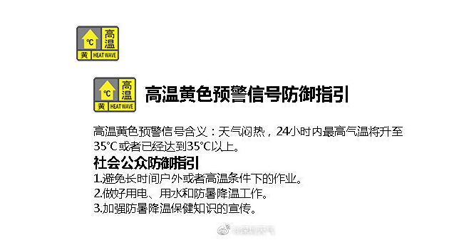 見(jiàn)圳客戶端·深圳新聞網(wǎng)2020年06月12日訊 深圳市氣象臺(tái)于2020年06月12日08時(shí)00分在全市陸地發(fā)布高溫黃色預(yù)警,預(yù)計(jì)12-13日深圳市最高氣溫將升至35℃以上,信號(hào)可能持續(xù)2天,做好防暑降溫工作,避免長(zhǎng)時(shí)間戶外或者高溫條件下的作業(yè)。