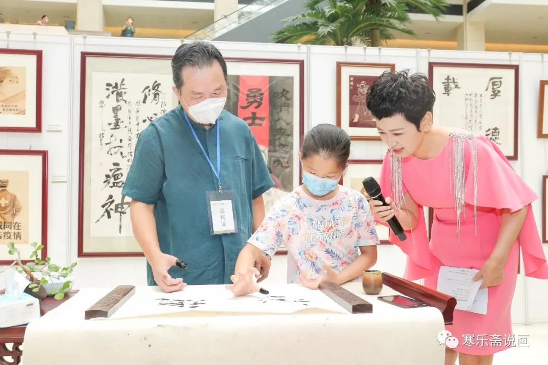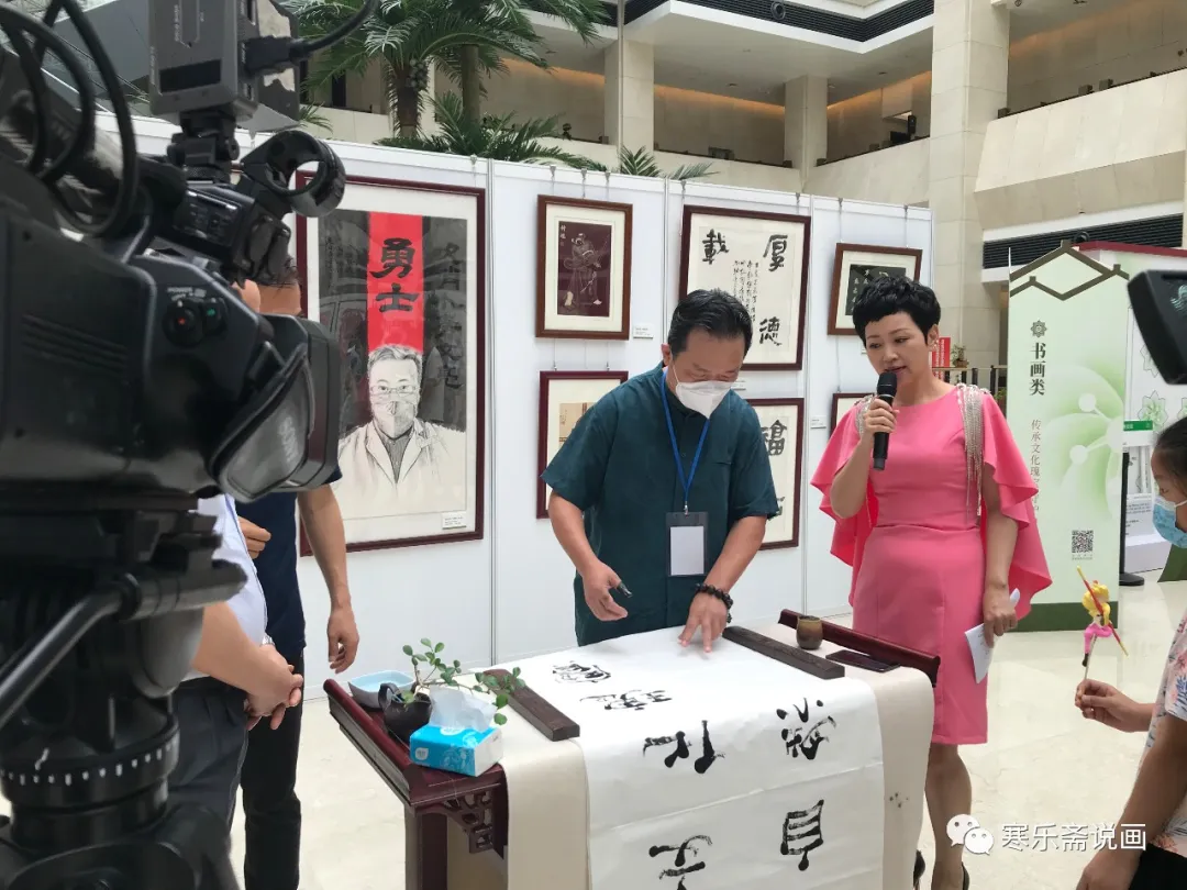 王和平在活動(dòng)現(xiàn)場揮指書寫“傳承文化瑰寶,守護(hù)自然之家”并接受主持人采訪。
