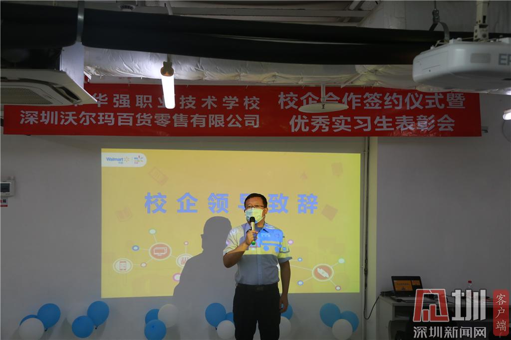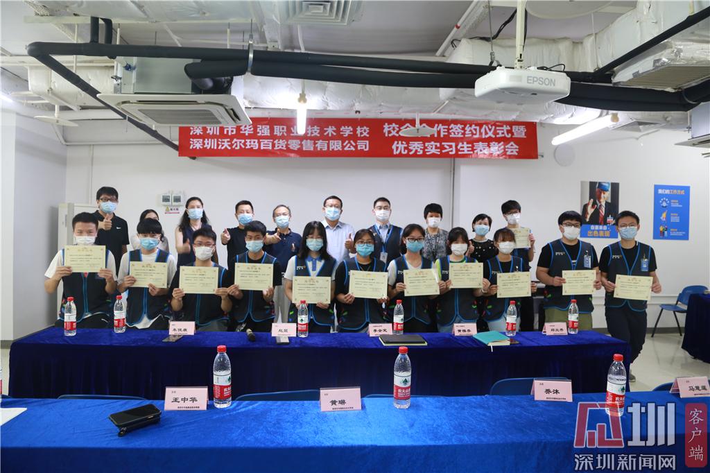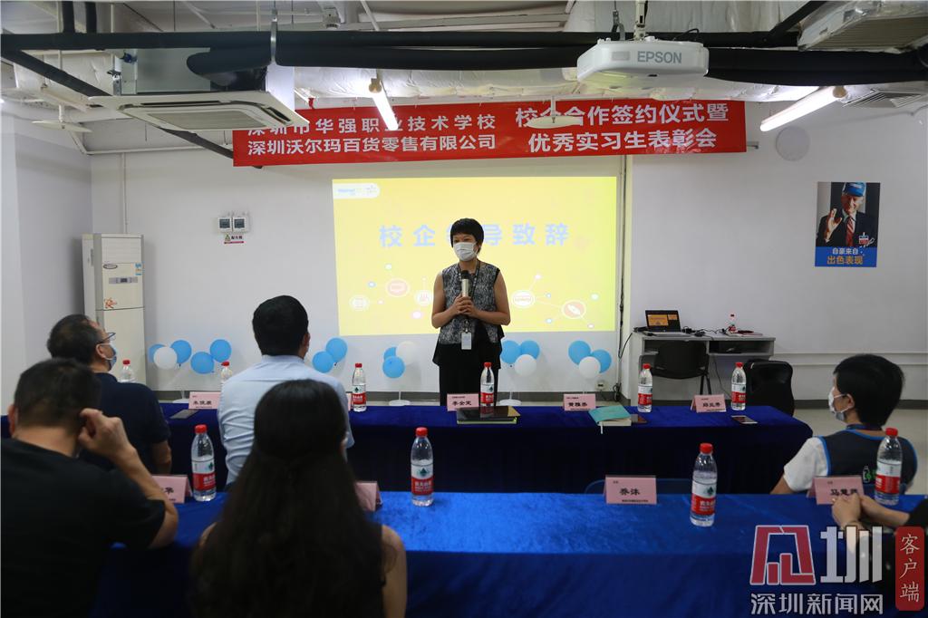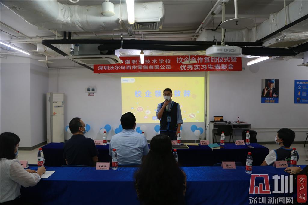 見圳客戶端·深圳新聞網(wǎng)2020年6月24日訊(記者 曹園芳 通訊員 沈琳 喬沐)昨天下午,深圳市華強職業(yè)技術學校與深圳沃爾瑪百貨零售公司簽訂校企合作協(xié)議。趙盟校長、朱俊康副校長、西校區(qū)王中華主任、校企合作辦黃琳主任、商貿(mào)部喬沐部長、財經(jīng)部馬慧連副部長、辦公室沈琳老師及學校優(yōu)秀實習生代表出席了簽約儀式暨優(yōu)秀實習生表彰會。