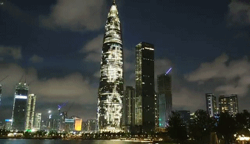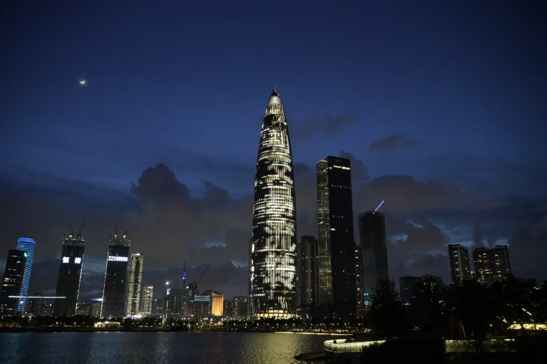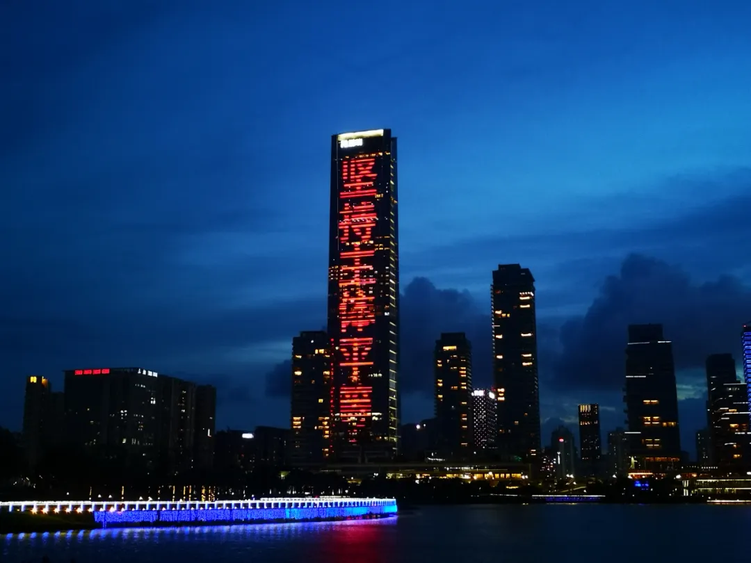 平安國際金融中心、京基100大廈、深圳漢國城市商業(yè)中心、深圳灣1號、中國華潤大廈五座城市地標的外立面上,同時亮起了絢麗的燈光。