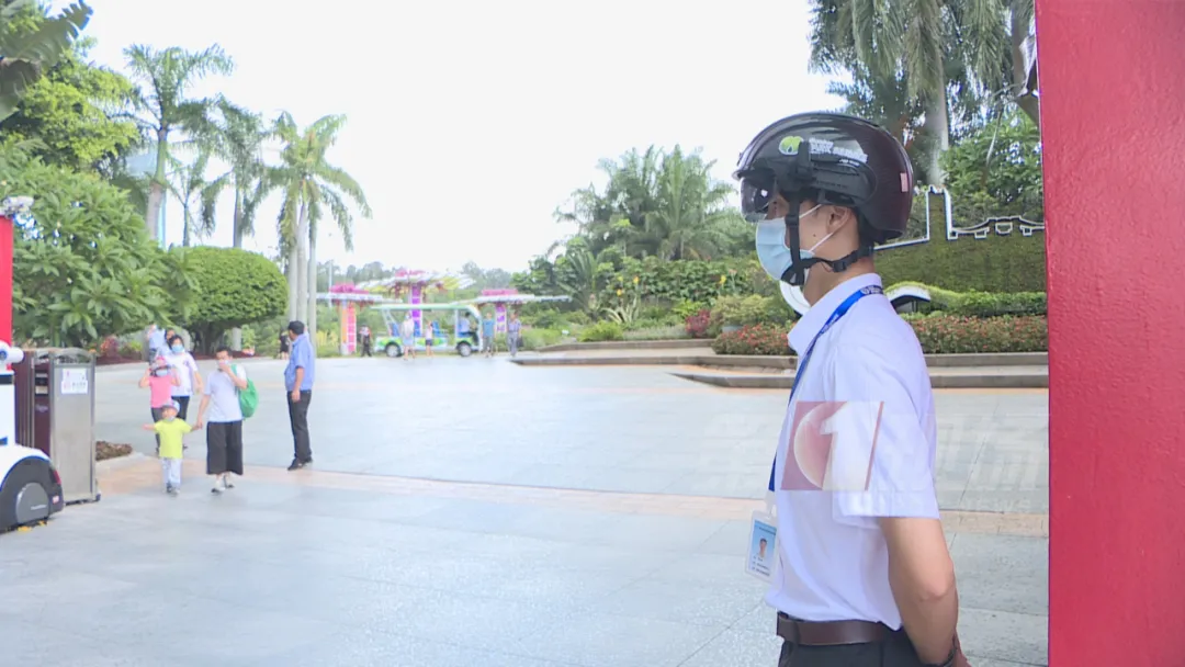 在蓮花山公園的南門口,安保人員戴著一頂智能頭盔,入園游客的體溫,可以實時顯示在眼前的屏幕上,一旦溫度達到37.3℃,就會發(fā)出警報。如果游客沒有戴口罩,門口的智能機器人也會提醒:“請您戴上口罩”。