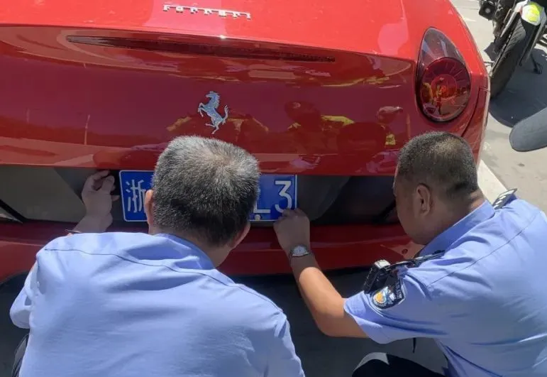 見圳客戶端·深圳新聞網(wǎng)2020年6月28日訊 2020年6月19日,深圳交警寶安大隊接群眾舉報稱:在益田假日廣場停車場有套牌車出沒。接到警情后,深圳交警立即派出鐵騎隊員趕到現(xiàn)場,找到舉報人所描述的一輛紅色法拉利,鐵騎根據(jù)舉報人所提供線索,對車牌號為浙A7****的紅色法拉利進(jìn)行核查。
