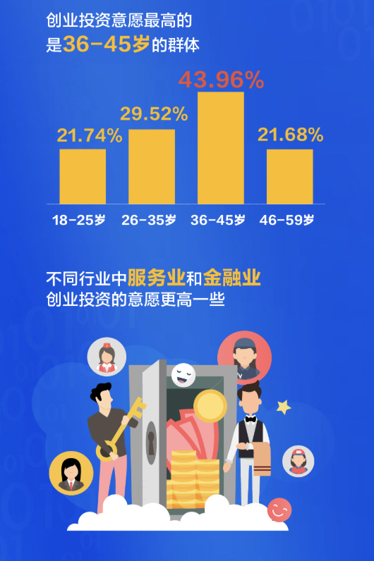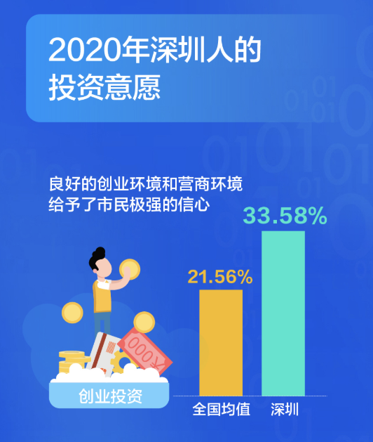 有了錢,深圳人會(huì)投資什么?大調(diào)查發(fā)現(xiàn),深圳人在創(chuàng)業(yè)投資的選擇占比高達(dá)33.58%,比全國(guó)平均水平要高出12個(gè)百分點(diǎn),良好的創(chuàng)業(yè)環(huán)境和營(yíng)商環(huán)境給予了市民極強(qiáng)的信心。從不同年齡段來(lái)看,創(chuàng)業(yè)投資意愿最高的是36-45歲的群體,不同行業(yè)中,服務(wù)業(yè)和金融業(yè)創(chuàng)業(yè)投資的意愿更高一些。
