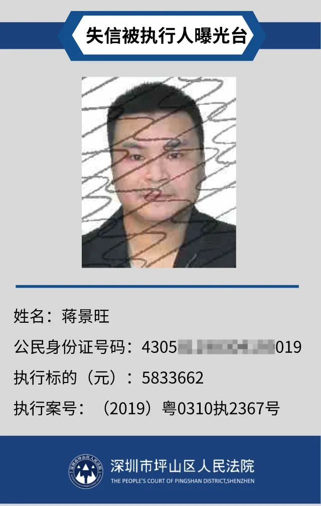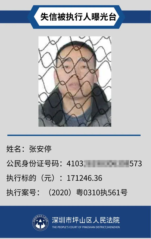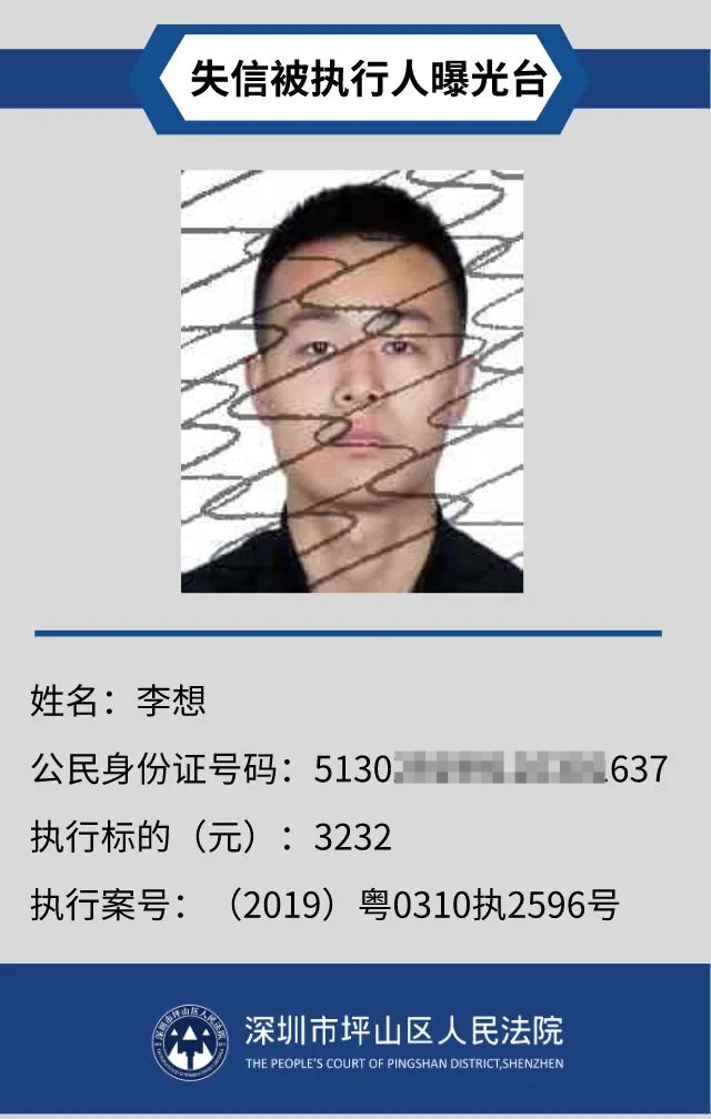 為督促被執(zhí)行人自覺(jué)履行生效法律文書(shū)確定的義務(wù),推進(jìn)社會(huì)誠(chéng)信體系建設(shè),深圳市坪山區(qū)人民法院根據(jù)《中華人民共和國(guó)民事訴訟法》第二百五十五條、《最高人民法院公布失信被執(zhí)行人名單信息若干規(guī)定》第一條和第七條之規(guī)定,現(xiàn)對(duì)31名失信被執(zhí)行人予以公布。名單信息根據(jù)案件結(jié)案情況及時(shí)更新,歡迎舉報(bào)失信被執(zhí)行人行蹤及財(cái)產(chǎn)線索,相關(guān)信息核實(shí)請(qǐng)聯(lián)系深圳市坪山區(qū)人民法院執(zhí)行局。
