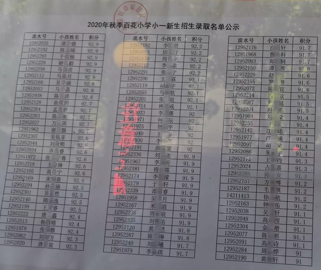 2020年福田區(qū)公辦小一新生錄取名單來了,部分學校最低錄取積分曝光