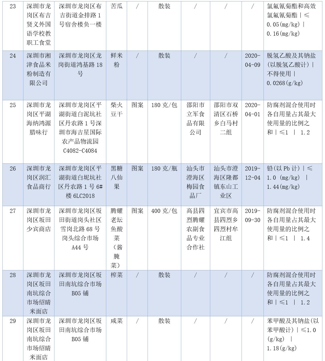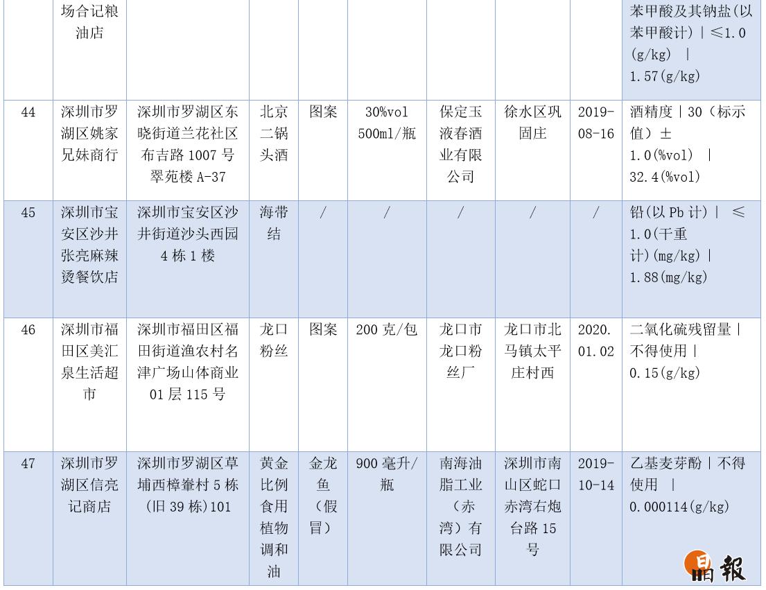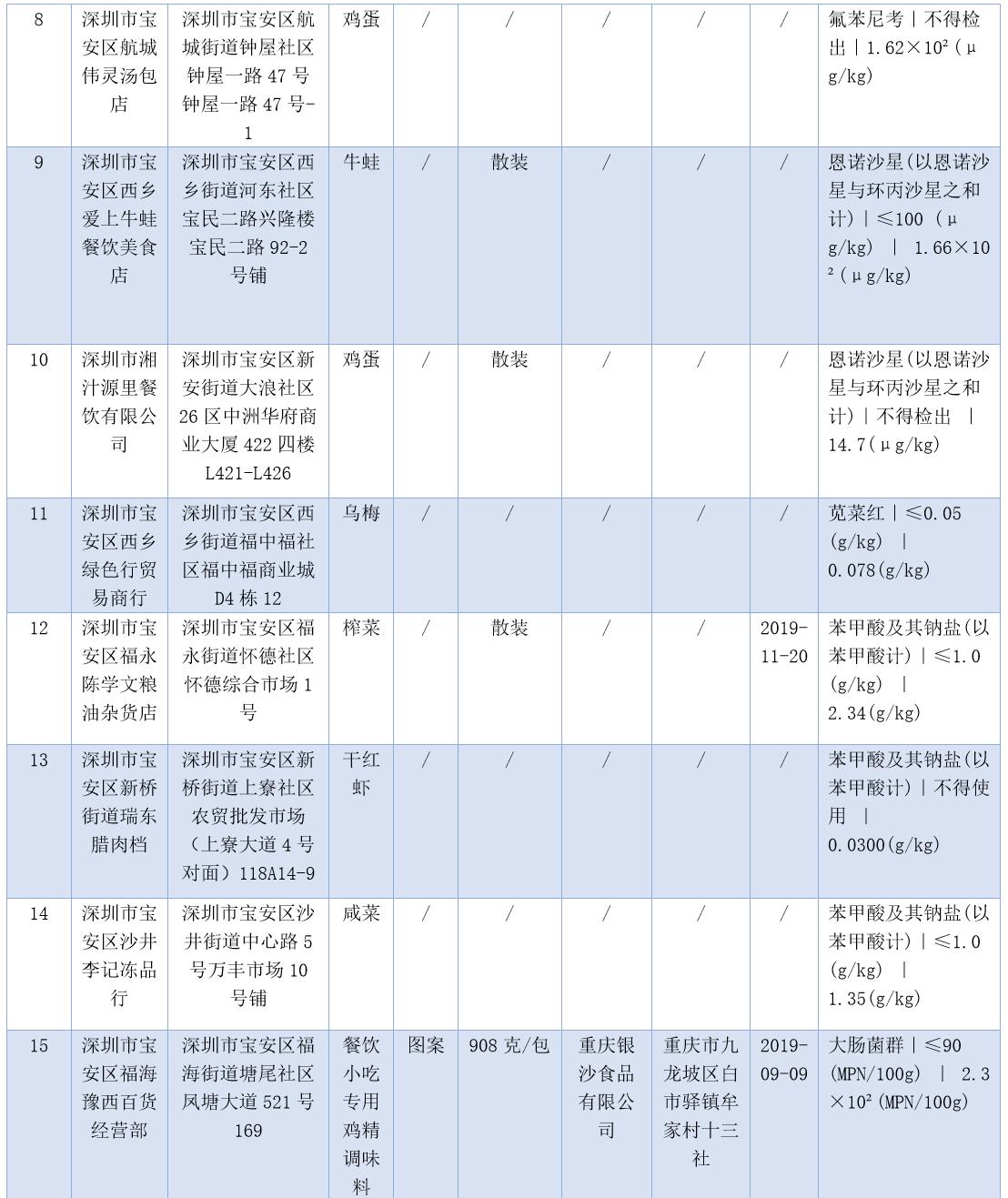 見(jiàn)圳客戶(hù)端·深圳新聞網(wǎng)2020年7月17日訊(晶報(bào)記者 鄧裴裴/制圖)7月17日,深圳市市場(chǎng)監(jiān)督管理局官網(wǎng)發(fā)布了2020年第二十二期食品安全抽樣檢驗(yàn)情況通報(bào),3-5月,共抽檢生產(chǎn)、流通、餐飲環(huán)節(jié)食品1229批次,發(fā)現(xiàn)不合格樣品47批次。記者注意到,不少不合格樣品抽檢單位為餐飲店,包括皇軒酒店、窯雞王、愛(ài)上牛蛙、御可奶茶等,還有些小吃店、腸粉店、螺獅粉店紛紛上榜。涉及不合格項(xiàng)目類(lèi)別包括農(nóng)藥殘留、獸藥殘留、食品添加劑、微生物污染、品質(zhì)指標(biāo)、金屬等元素污染物。