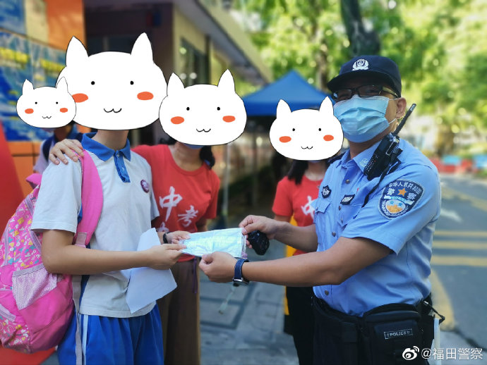 7月21日,深圳中考第二天,景田派出所社區(qū)民警一早就在各考場外為考生們保駕護航。當(dāng)社區(qū)民警趙廣生看見一名忘記佩戴口罩的考生時,立即取出身上的備用口罩遞給她,使得考生順利進入考場參加考試。福田警方溫馨提醒:乘風(fēng)破浪的同時,也要做到考試防疫兩不忘。少年們,下午的考試?yán)^續(xù)加油吧!