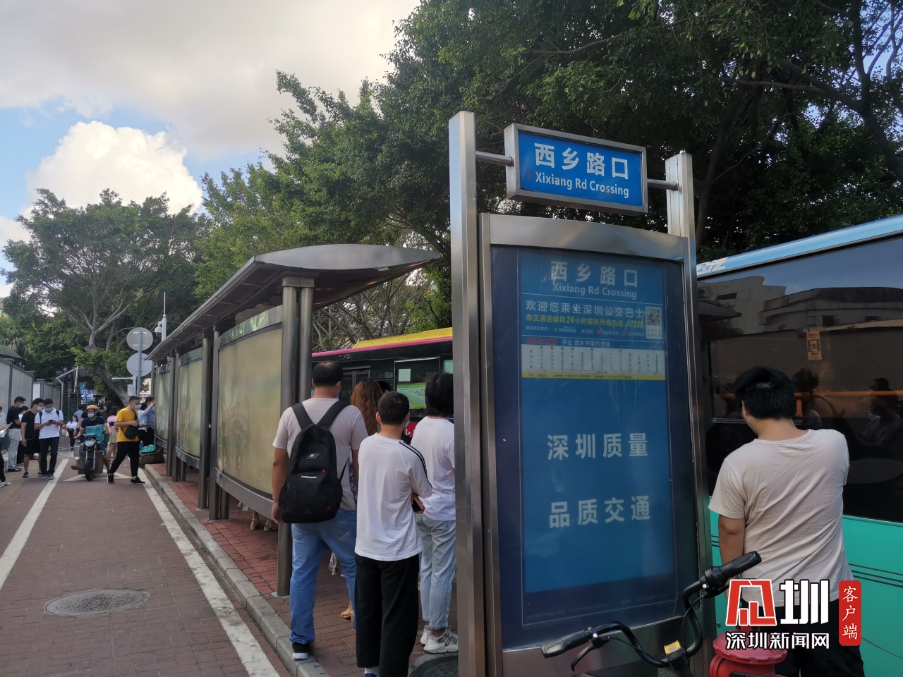 【廣深公路】上午8時(shí)19分,記者位于西鄉(xiāng)路口公交站臺(tái)的實(shí)時(shí)路況,該站臺(tái)有多路公交來往市區(qū)。